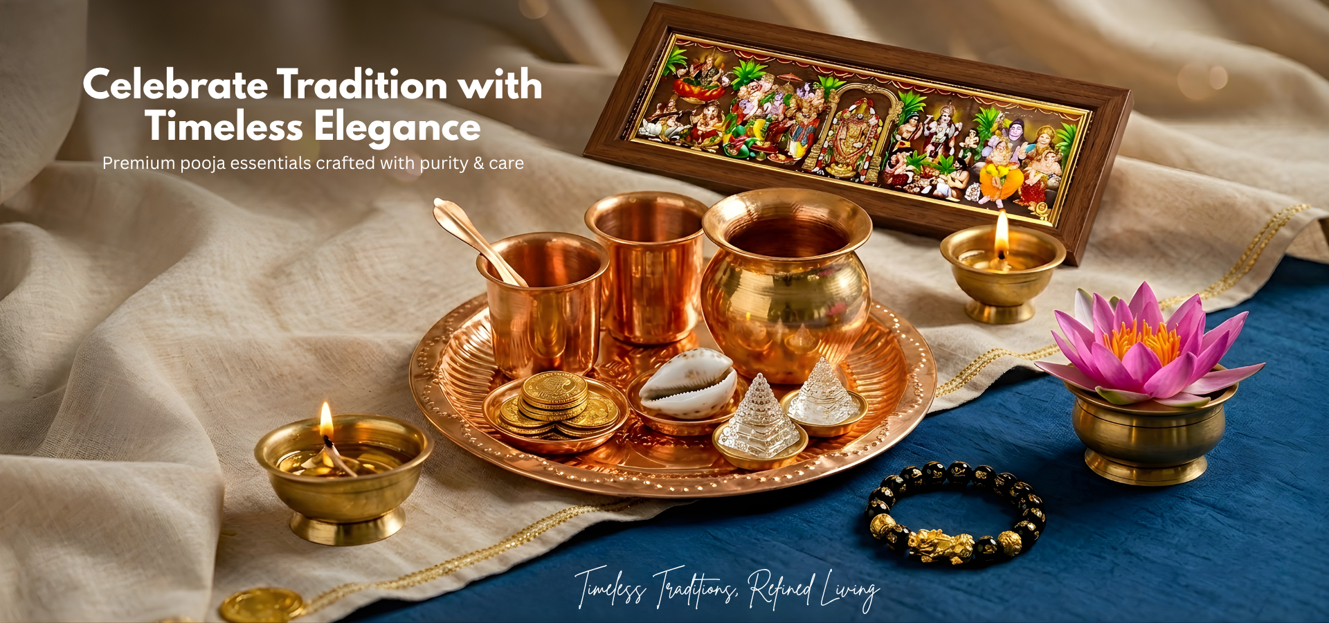 Discover our handpicked collection of sacred pooja essentials — crafted for your daily devotion and every auspicious occasion.