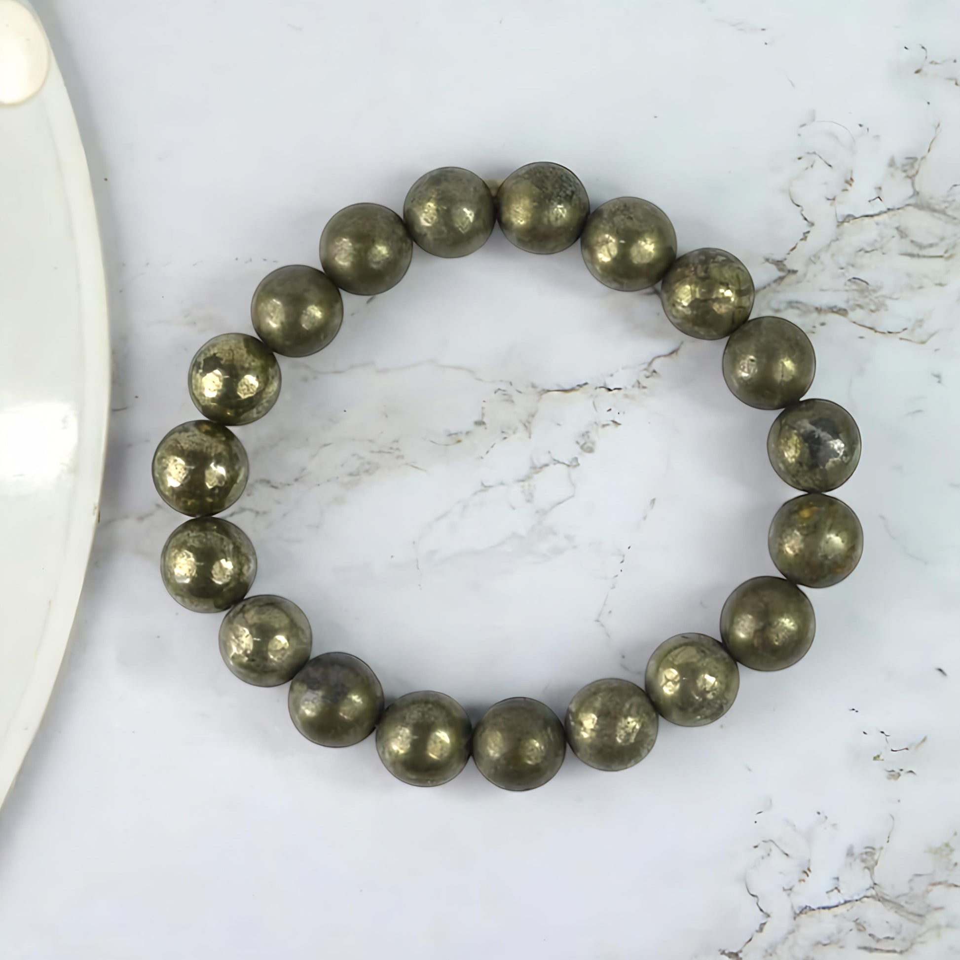 - A Pyrite bracelet strengthens Personal power, Courage, Motivation and Leadership qualities